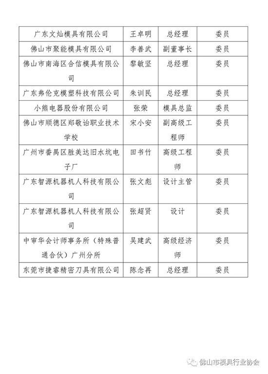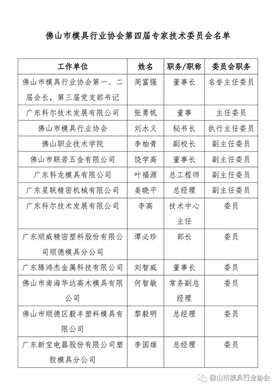 附:佛山市模具行業(yè)協(xié)會第四屆專家技術(shù)委員會名單