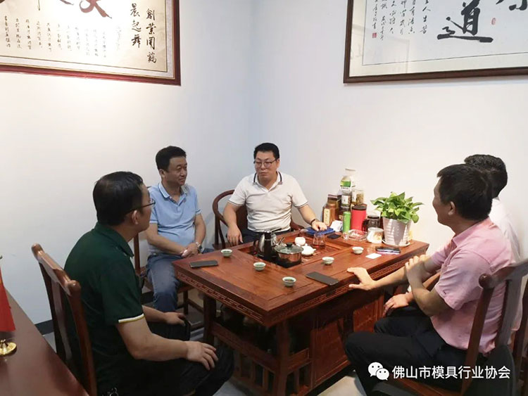2021年5月12日下午,協會劉水義秘書長帶領理事單位廣州精雕數控工程有限公司范登奎總經理前往獅山走訪會員企業,與獅山企業開展管理交流沙龍,首先來到理事單位佛山市南海華達高木模具有限公司,受到了何智敏常務副總經理的熱情接待。