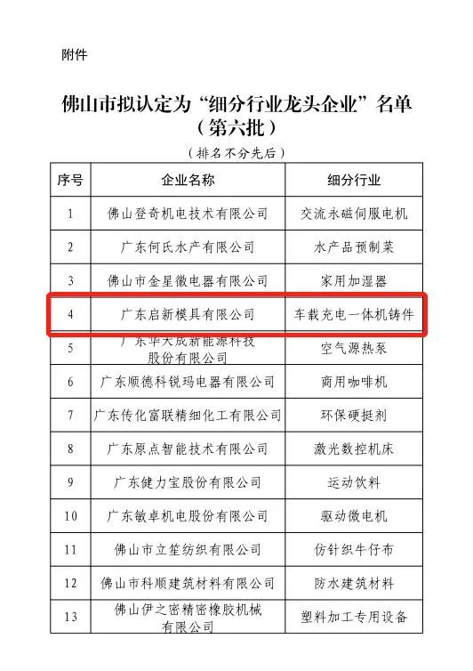 12月22日,佛山市擬認定為“細分行業龍頭企業”名單予以公示,我會4位入選的會員企業分別有:廣東啟新模具有限公司、文燦集團股份有限公司、佛山市南海華達高木模具有限公司、佛山市盈特精密模具有限公司。