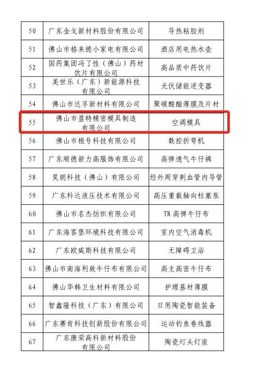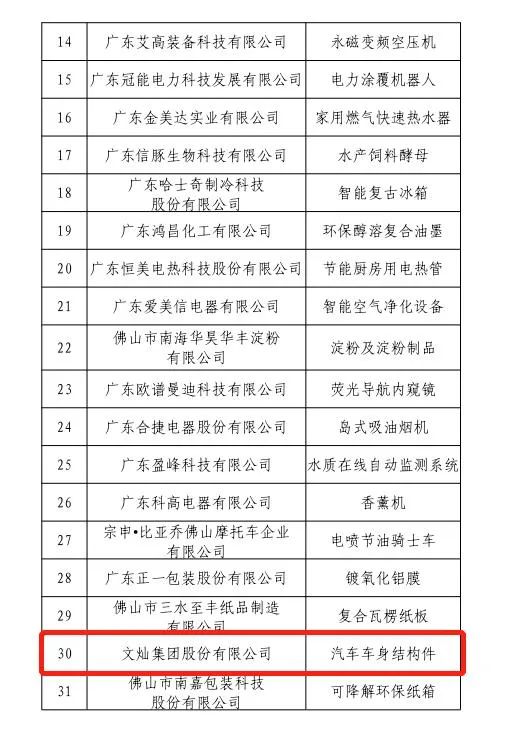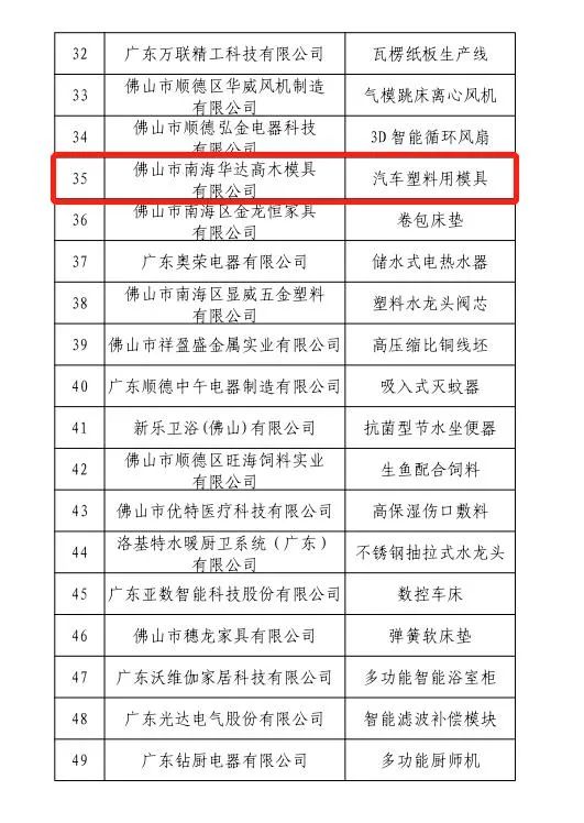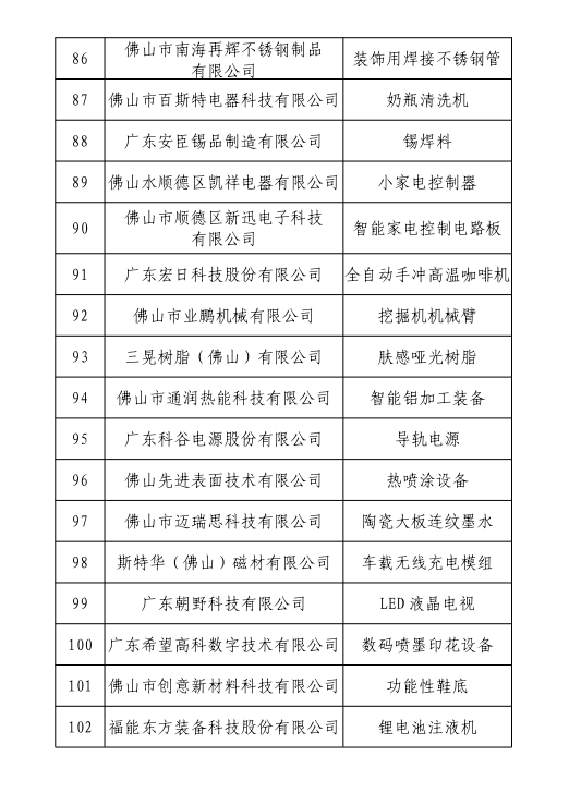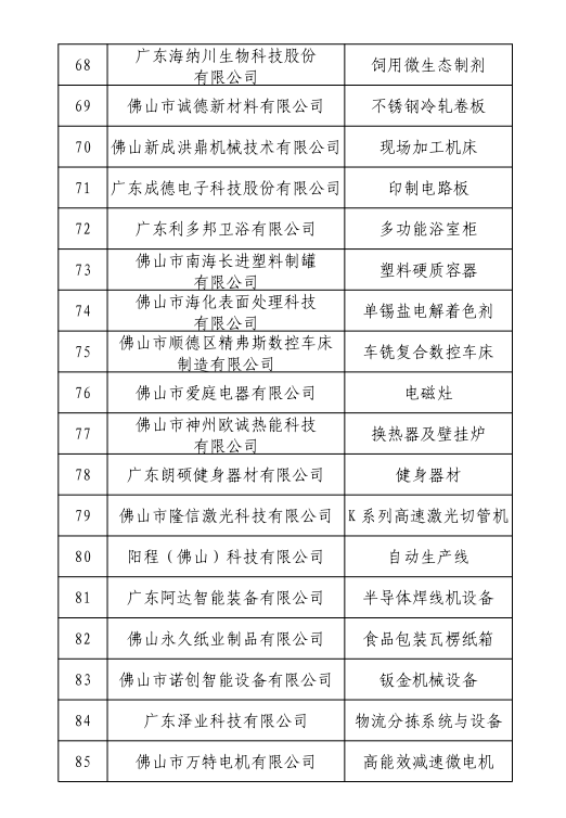 佛山市擬認定為“細分行業龍頭企業”名單