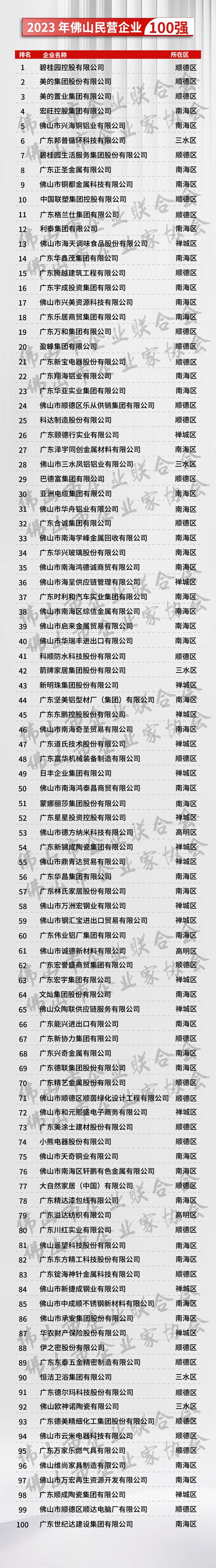 佛山企業100強