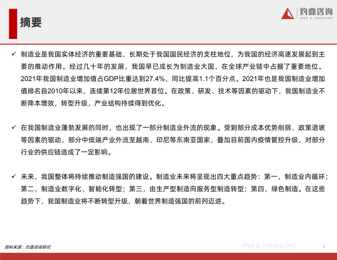 灼鼎咨詢發布《中國制造業行業研究報告(2022)》,分析了中國制造業現狀、驅動因素、外流現象和發展趨勢。