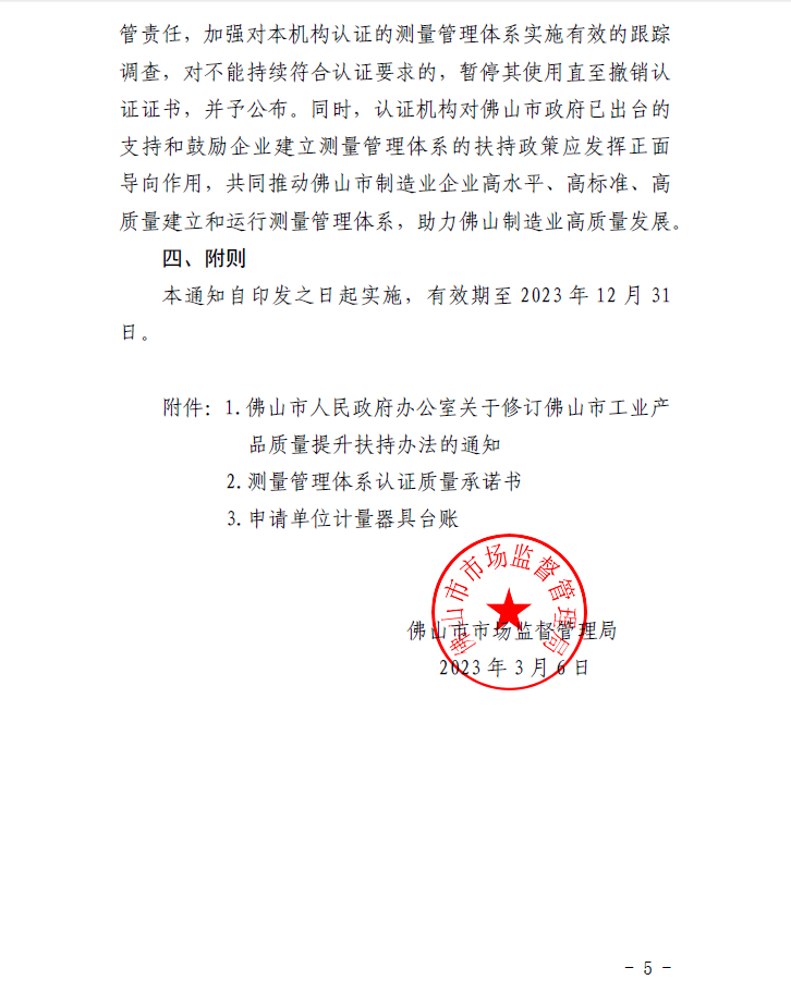附件1:佛山市人民政府辦公室關于修訂佛山市工業產品質量提升扶持辦法的通知 附件2:測量管理體系認證質量承諾書.doc附件3:申請單位計量器具臺賬